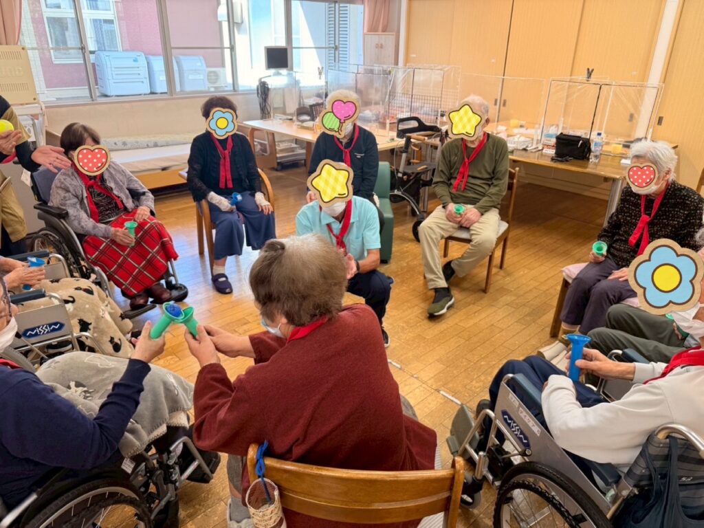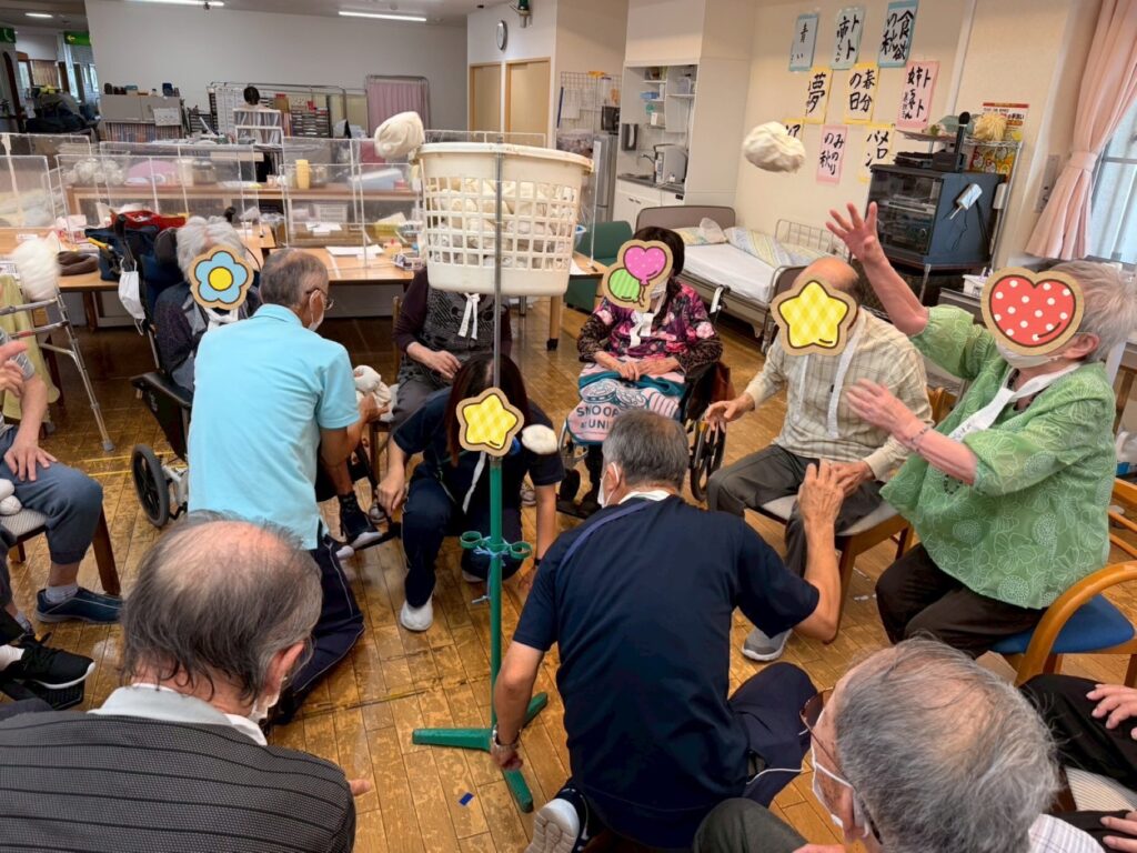 赤組と白組の2つのチームに分かれ、利用者様方には